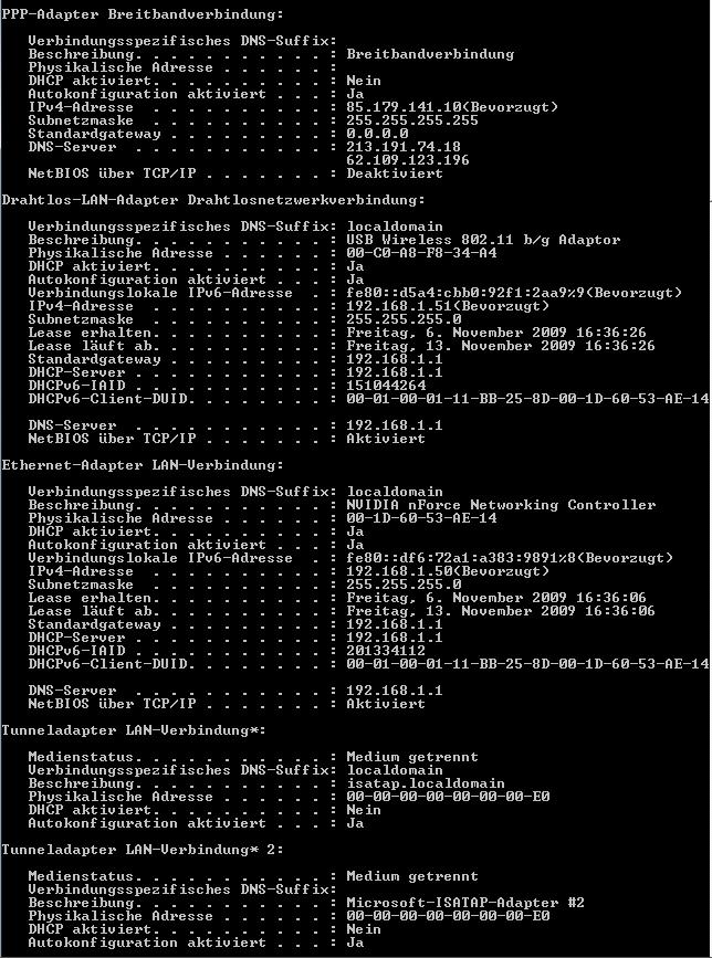 Anbei das Ergebis ipconfig