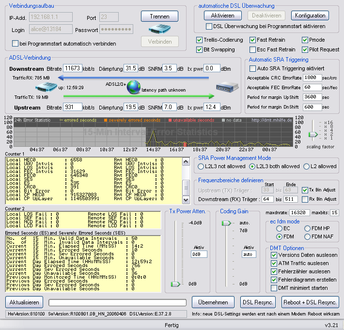leider habe ich auch seit einiger zeit Daten einbrüche und Unterbrechungenmitten beim Surfen. Ich habe mir deshalb die DMT Auswertung gemacht. Wer kann mir sagen ob die Messwerte okey sind,die Leitung in wieweit gedämt ...? vielen Dank