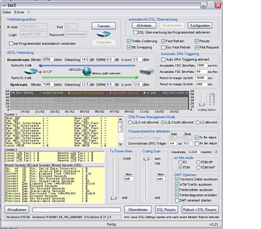 Nach dem nun 5ten Ticket über die Hotline bin ich inzwischen etwas genervt, da zwar nach den Telefonaten (und ich nehme an einem Line Reset) die Perfomrance wundersam auf immerhin kanpp 6Mbit hochgeht, aber wie lange? Das weiß scheinbar nicht mal Alice und DAS NERVT.