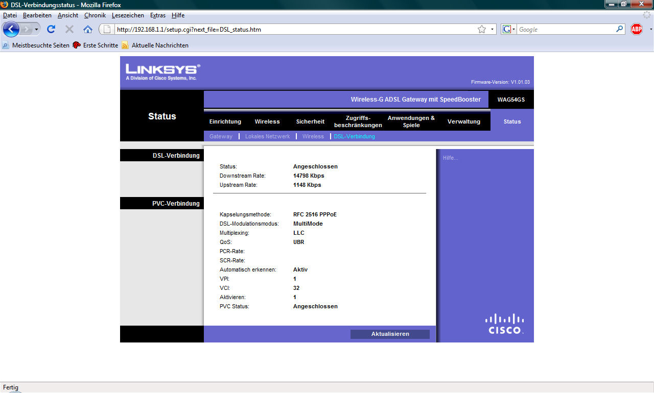 Ich bin NOCH etwas enttäuscht, weil der mit fast 1 MBit/sek weniger synct als der WAG54GS.