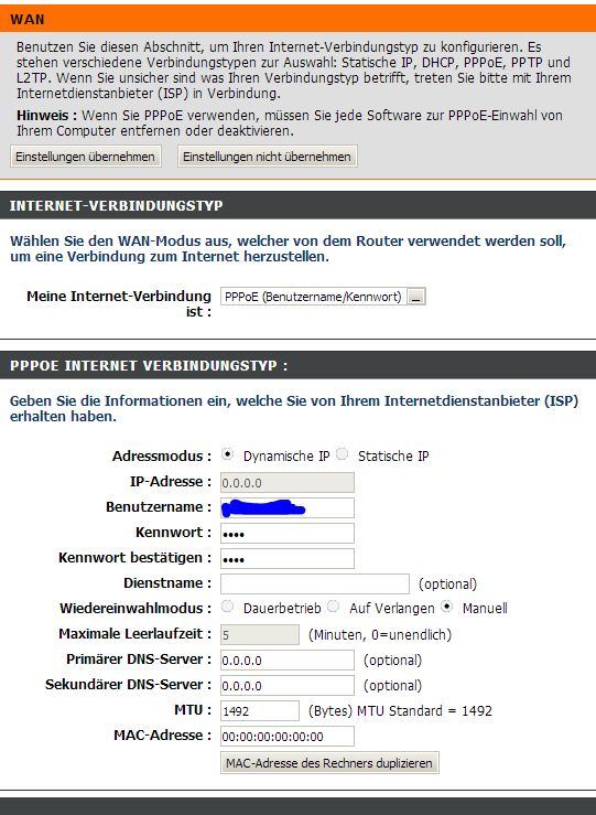 ich habe im Router (D-Link) die Zugangsdaten eingetragen und trotzdem muss man noch die PPoe Verbindung herstellen.