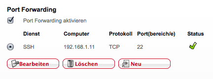 Im Router-Backend habe ich das Portforwarding aktiviert und Port 22 für die IP des Servers zugelassen, siehe Anhang.