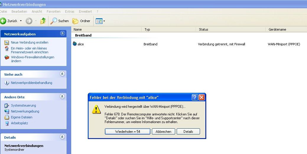 Komme nicht ins www, über ne PPPOe verbindung...es wird keine LANVerbindung erstellt.