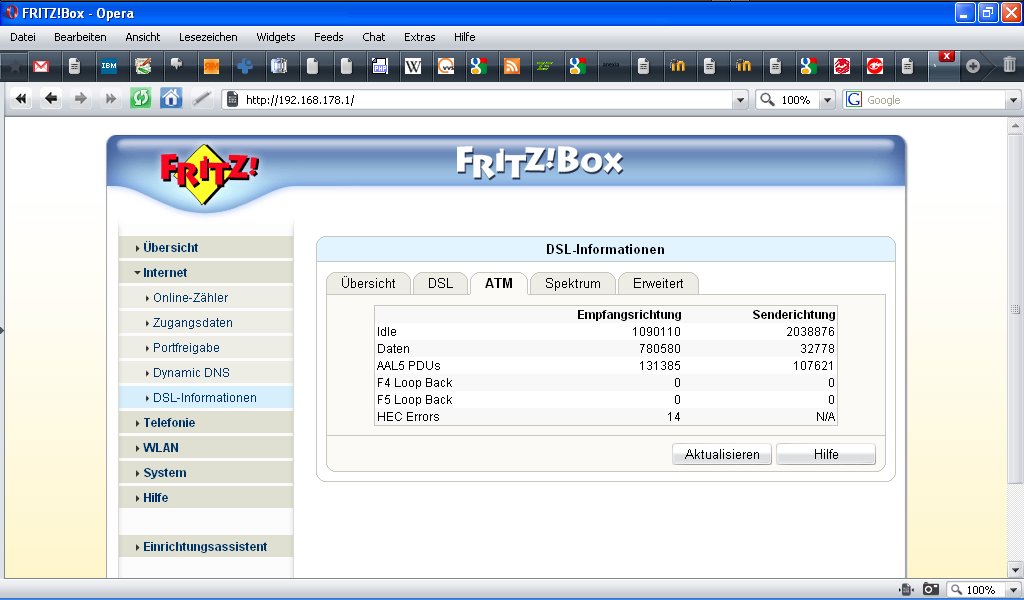 Ausserdem beziehe ich mich mal ganz dreist auf das Angebot von Kenny, denn ich habe Screenshots von meiner FB gemacht (jedoch noch zu zeiten, als ich die Abbrüche hatte - mittlerweile hab ich eher ne scheiss Bandbreite, auf die nur das Alice Modem Synchren kann)