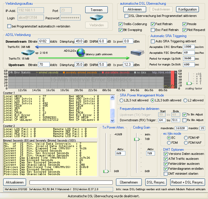 Das mit der Leitungsdistanz und den Dämpfungen ist nur die halbe Wahrheit. Vor ein paar Monaten sagte mir man meine leitung vor Ort brächte max 10000kbit was für mich ok war, nun erzählt man mir es seien nur noch 6000kbit. Ich habe auch alice 16000 doch laut dmt und sogar nach Anruf bei der kostenpflichtigen Hotline wurde mir ein Durchsatz von 6000kbit bestätigt. Allerdings sind Auf Anfragen mein Profil hochzustellen oder die Geschwindigkeit abzugleichen wurde gesagt das die Störungen derzeit bearbeitet werden. Viel mehr zeigt es das den Kunden nicht die volle Bandbreite mehr zugeteilt wird sondern nur noch "Sparpakete" um wohlmöglich Ressourcen zu haben für die Neukunden, was zum leidtragen aller führt.