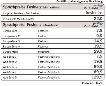 22Cent/min in nationale Mobilfunknetze - Punkt - Ende