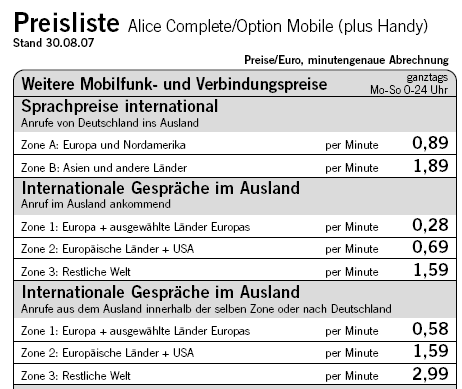 Alice Mobil in Ausland.