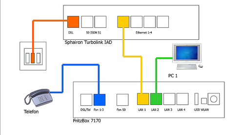 So das modem ist da .Habe TURBOLINK IAD bekommen .Wird das boden mit dem wlan 7170 so angeschlossen wie im bild .