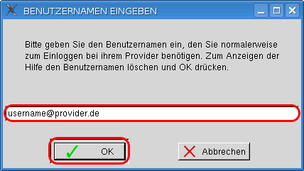 Schritt 5: Jetzt kommt das erste mal die Tastatur ins Spiel. Der Benutzername ist gefragt, wie immer zu finden in den Unterlagen vom Provider. Anschließend gehts mit OK weiter.