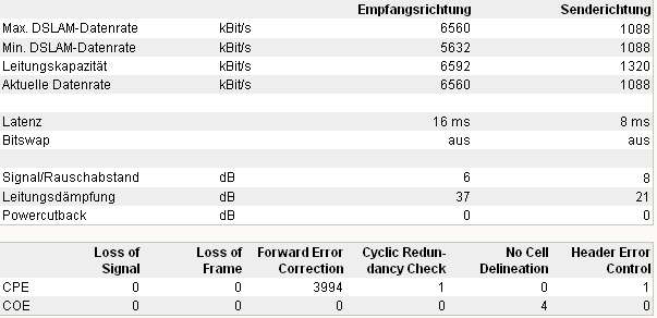 Leider musste ich feststellen, das es immer wieder zu Verbindungsabbrüchen kam und ich nur 6560 KBit/sec zur Verfügung habe.