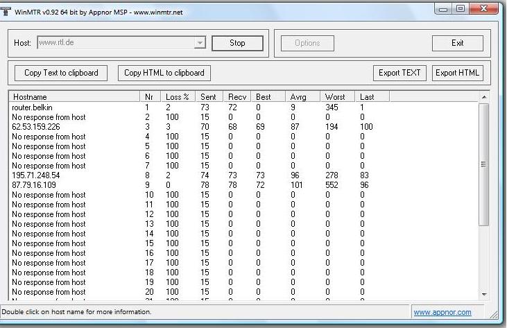 Als es wieder mal sehr langsam wurde, habe ich WinMTR gestartet.