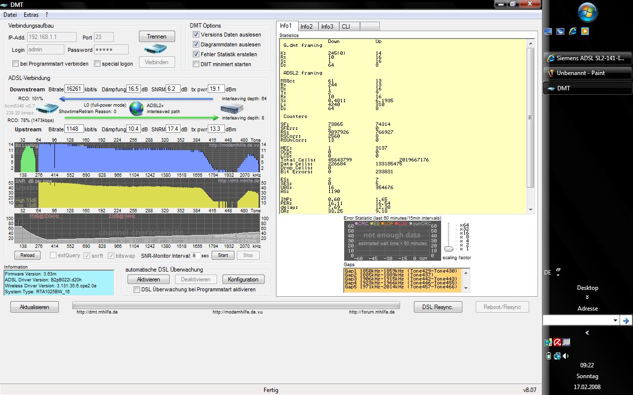 habe mit dem dmt tool die sra etwas runtergeschraubt und ca 2 mbit mehr leitungskapazität erhalten. die sync hält es aus.