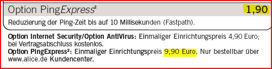 Gibt es auch Ping Express für Alice Light nutzter oder geht es nur bei dem teuersten Packet?