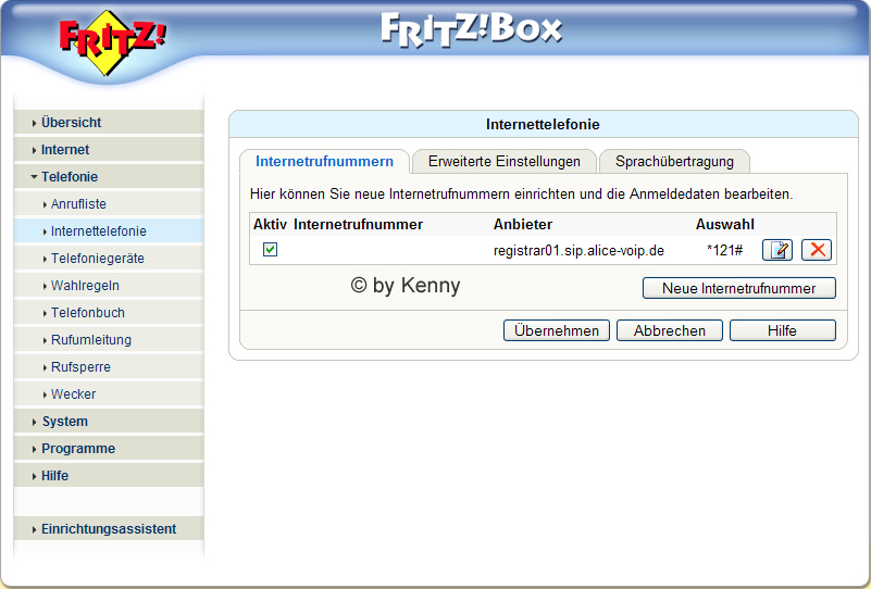 Dann Telefonie=> Internettelefonie=> Internetrufnummern=> (alle vorhandenen löschen) neue Internetrufnummer=>