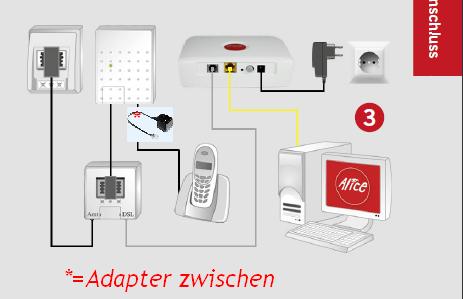 Habe eine Alice Max Fun Flat ISDN und alle Geräte wie im Handbuch und hier im Forum vorgeschrieben, verbunden.