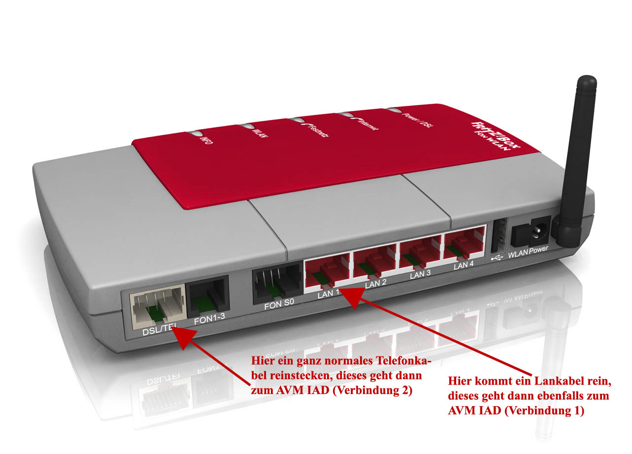 Die Fritz Box mit 2 Lan Kabel anschließen funk. leider nicht. DSL funkt., aber beim Tel, kommt immer wieder das belegt Zeichen.