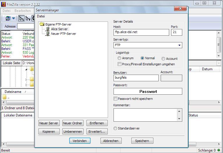 Ich möcht jetzt gerne von Alice die Website nutzen. Nun wollte ich wie beschrieben meinen FTP einrichten.