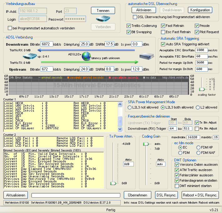 Schau mal in die FAQ (viewforum.php?f=41) und lies Dein Modem mit DMT-Tool aus: