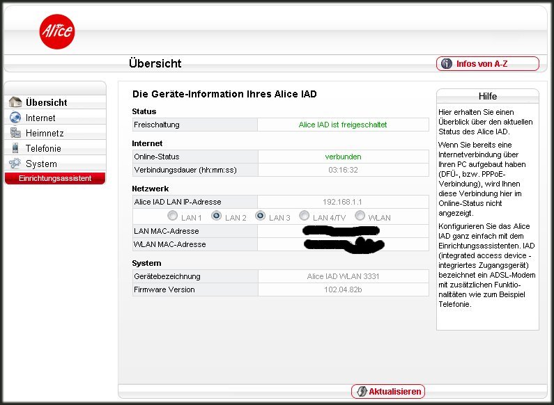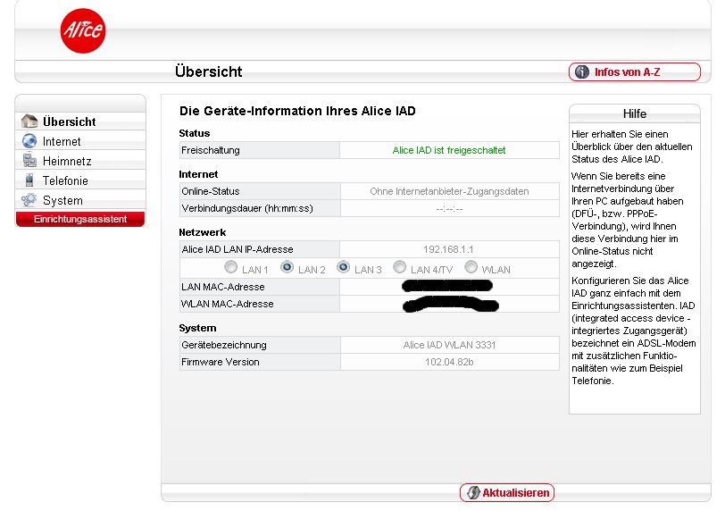 Um mich völlig unbeliebt zu machen, nochmal die Frage. Hast du länger als 10 Sekunden die Resettaste des Alice IAD gedrückt?