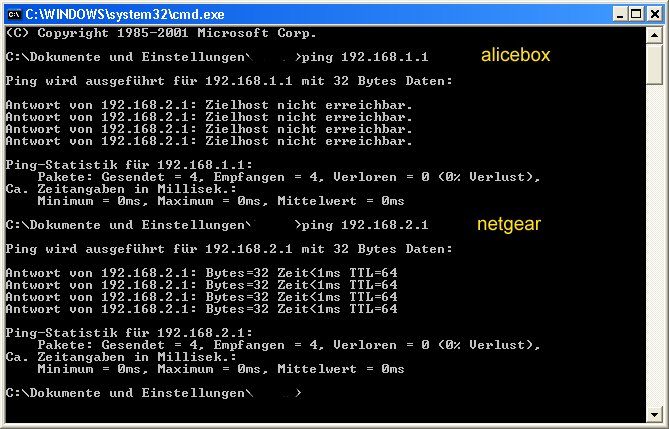 sykes hat geschrieben:Was mich stutzig macht: du kannst, am Netgear angeschlossen, die 192.168.1.1 anpingen?! Für gewöhnlich ist das, an einem weiteren Router hängend, nicht möglich.