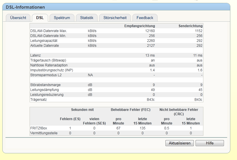 Um jetzt mal zum Punkt zu kommen. Ich habe seit dem 17.10.2010 eine Verbindung von 1000 kBit/s bis maximal 5000 kBit/s.