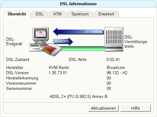 Ich habe mal die Fritzbox ohne Sphairon ans Netz gehängt, mir die DSL-Daten angesehen und die Grafiken kopiert. Was haltet Ihr davon? Meint Ihr, ein Hotline-Anruf mit Bitte um Profil-Update würde sich lohnen?