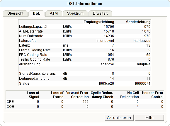 Hier noch die Grafiken der DSL-Werte aus der Fritzbox: