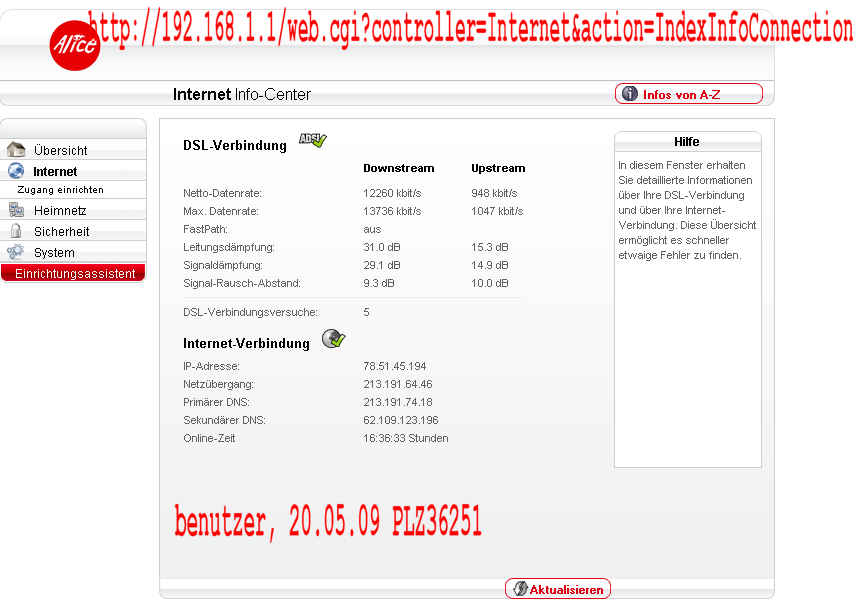 ... Ruhe ....Status Abfrage : https://www.alice-dsl.de/kundencenter/m ... rStatus.do Keine Anzeige