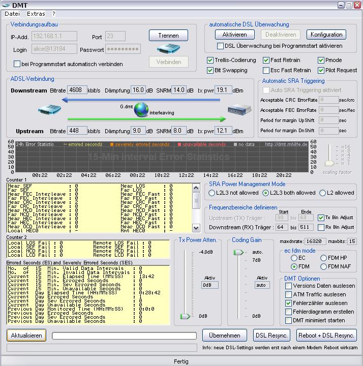 nebenbei erwähnt ist bei dir nur adsl, nicht adsl2+ aktiv. adsl2+ ist für alles in richtung 16000 erforderlich. einfach mla 'ne e-mail über das kontaktformular in der lounge losschicken.