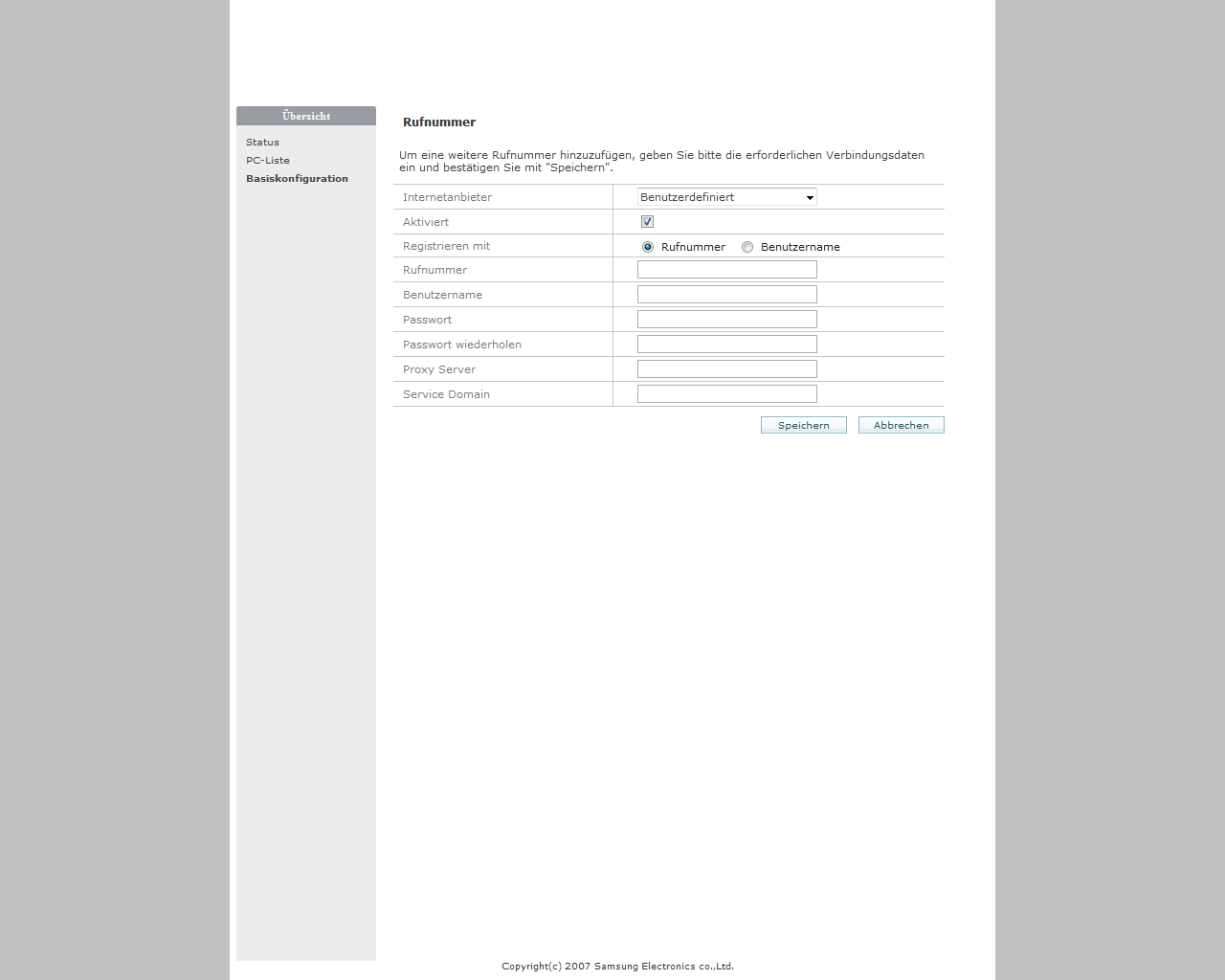 Verwenden Sie die [Basiskonfiguration] des Samsung Routers.