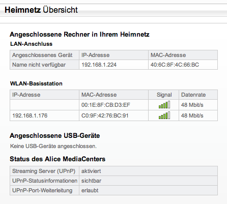 Nachdem vor 2 Tagen meine Fritzbox kaputt gegangen ist, wollte ich übergangsweise die Alice Homebox (WLAN 1231) anschliessen. Soweit war das natürlich auch kein Problem, aber mein WLAN Drucker (Canon MP560) will sich nicht so recht ins WLAN einfügen. Im Netzwerk hängen bei mir ein Mac (per LAN) und 2 Windows Laptops (per WLAN). Wenn ich auf allen 3 Rechnern die Installation der Treiber durchlaufen lassen, kommt spätestens bei der Suche des Druckers im Netzwerk die Fehlermeldung: Drucker kann im Netzwerk nicht gefunden werden!