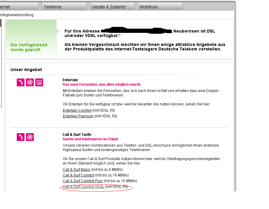 VDSL-Verfügbarkeitscheck